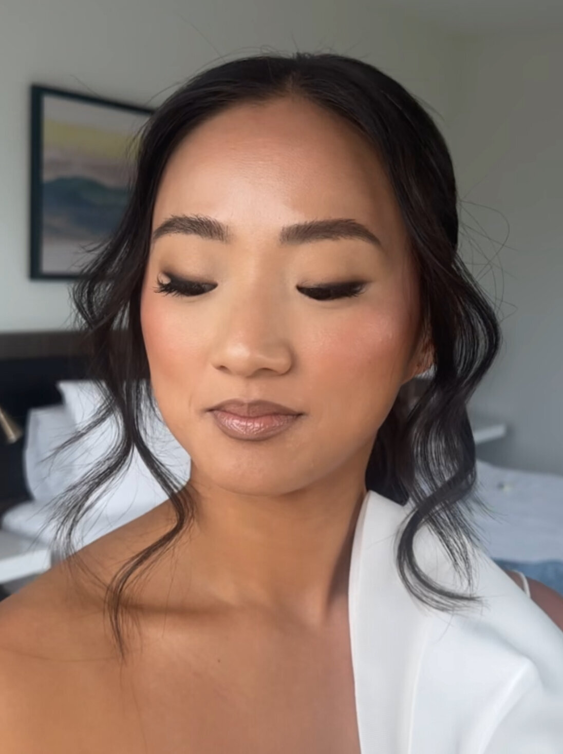 Current favorite bridal trends : As a professional makeup artist, it’s my job to be aware of all the current fashion and color trends and to also see beyond them to what is coming next. I balance that knowledge with a timeless classical approach so you won’t ever dated. Currently, I really love a soft blended velvety eye look soft around the edges and nice and smoky near the lashes. I see a lot of beautiful warm peachy browns that look great on practically everyone. Pair that with a glowing blush and bronzed skin, anyone can look like Jennifer Lopez!